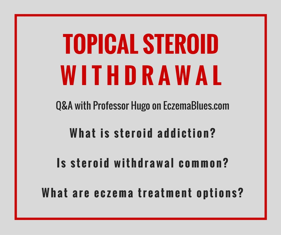 In March 2015, the National Eczema Association (NEA, in US) published a study on steroid addiction in patients with atopic dermatitis. This was by members of its task force, who looked into the evidence regarding steroid withdrawal as many eczema sufferers were asking about the steroid addiction syndrome, along with many cautioning and enquiring on this online and over social media. The use of steroid creams remains a common treatment option, and the phobia of steroids has also stopped eczema sufferers, including children, from receiving treatment. The questions we are exploring with Professor Hugo centered on: